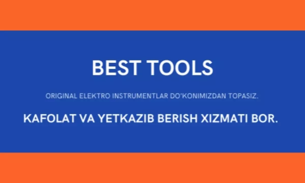 Компания OOO "BEST-TOOLS" 14 лет на рынке инструмента и техники 1 500 000 довольных клиентов по всей стране 2 городах есть наши розничные магазины (1 ф-л новый Сергелийский район 56) (2 ф-л Чиланзарский район) "HUSQVARNA", "MILWAUKEE" ,"GREENWORKS "," BOSCH", "STIHL", "YATO" ,"MTD" ,"ALBERT" "ROLF", "IEMA" ,"NUMBER ONE" Поставки оборудования из Германия Поставки оборудования из Россия Поставки оборудования из Китая А также по вашему заказу Мы поможем с выбором товара в следующих категориях Все для сада, Станки, Техника для климата и уборки, Электрика и свет, Автосервисное оборудование, Расходка, крепеж, спецодежда, Товары для отдыха.
